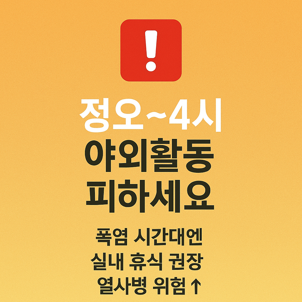 - 폭염 시간대는 오전 11시부터 오후 4시까지가 가장 위험하며, 이 시간대에는 관광 대신 실내 휴식을 권장합니다.