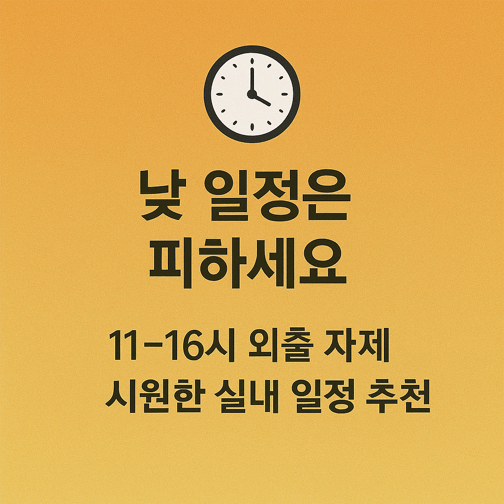 | 일정 조정 | 정오~오후 시간대 야외 일정 최소화 | 에어컨 시설 있는 실내 중심 이동 |