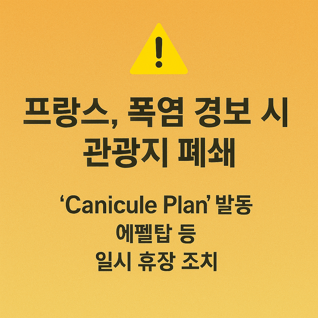 | 프랑스 | 적색 경보 발령 시 학교·관광지 폐쇄 | 공공병원 비상 진료 확대 | ‘Canicule Plan’(폭염 계획) 가동 |