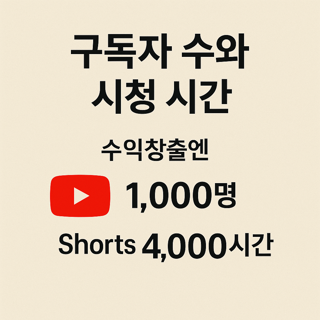 | 시청 시간 | 최근 12개월 내 3,000~4,000시간 | 또는 Shorts 300만 회(90일 기준) |