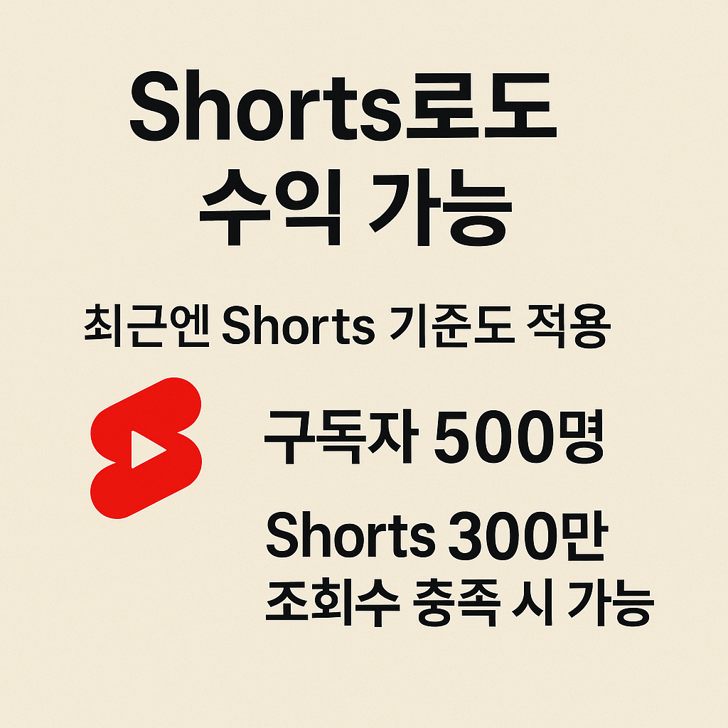 물론입니다. Shorts를 중심으로 운영하는 채널의 경우 최근 90일 내 Shorts 300만 회 조회수를 달성하면 수익창출 조건 충족으로 인정받을 수 있습니다. 이러한 기준은 **숏폼 콘텐츠 활성화 정책**의 일환으로, 전통적인 긴 영상 대신 Shorts로 수익을 내는 구조를 허용한 것입니다.