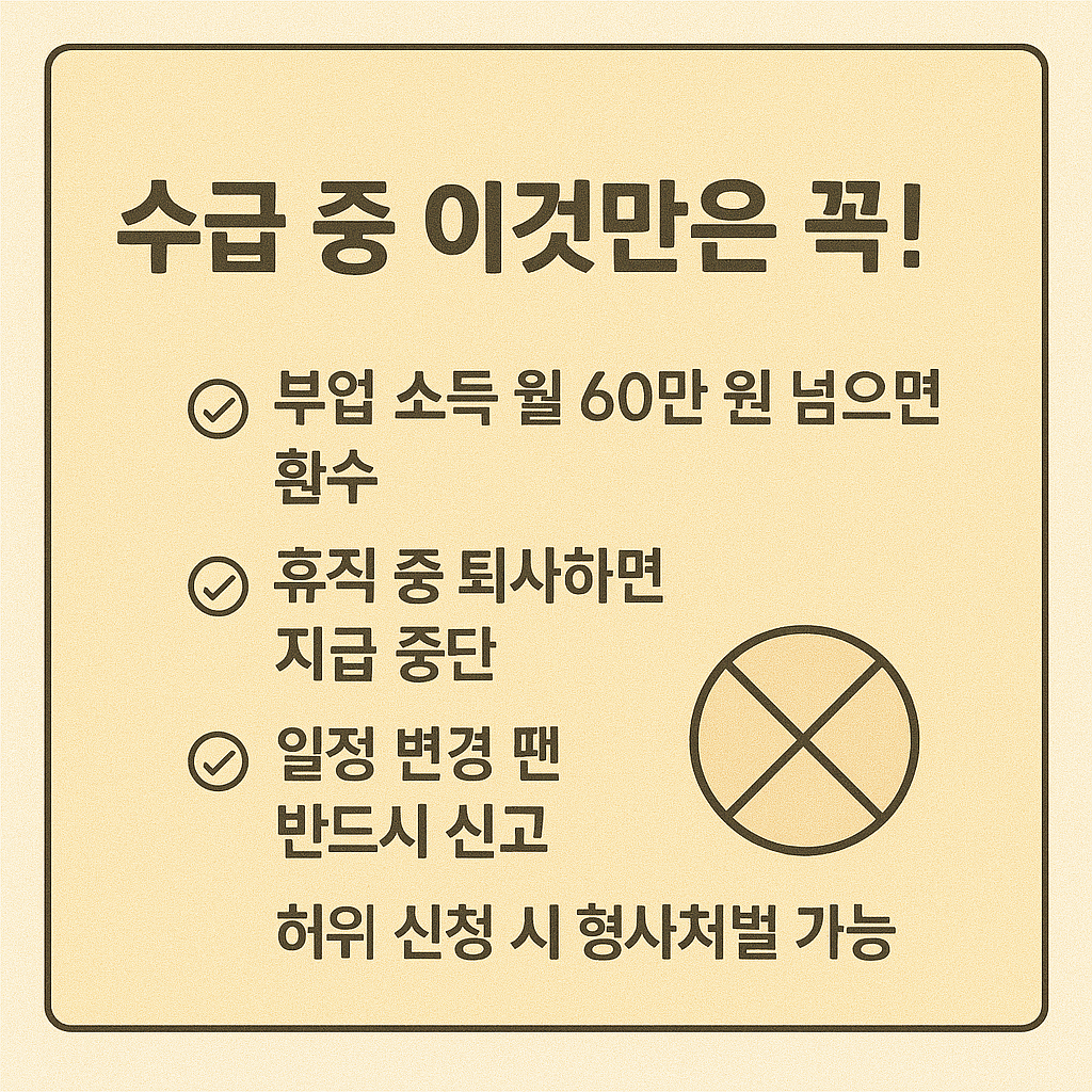 - 육아휴직 중 해외 여행 또는 장기 출국 시, 수급 제한 가능