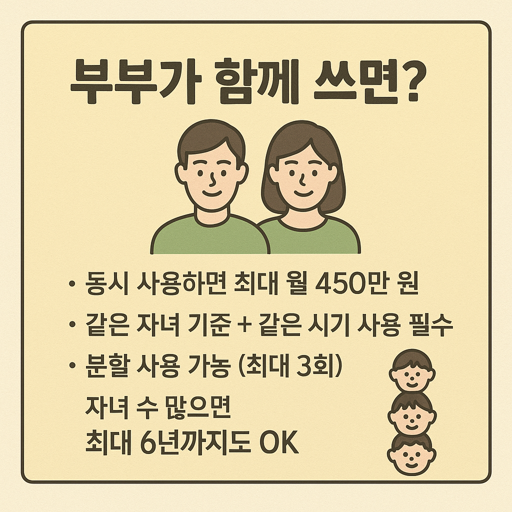 | 부부 동시 사용 인센티브 | 없음 또는 1~3개월 보너스 | 1~6개월, 최대 월 450만 원까지 상향 |