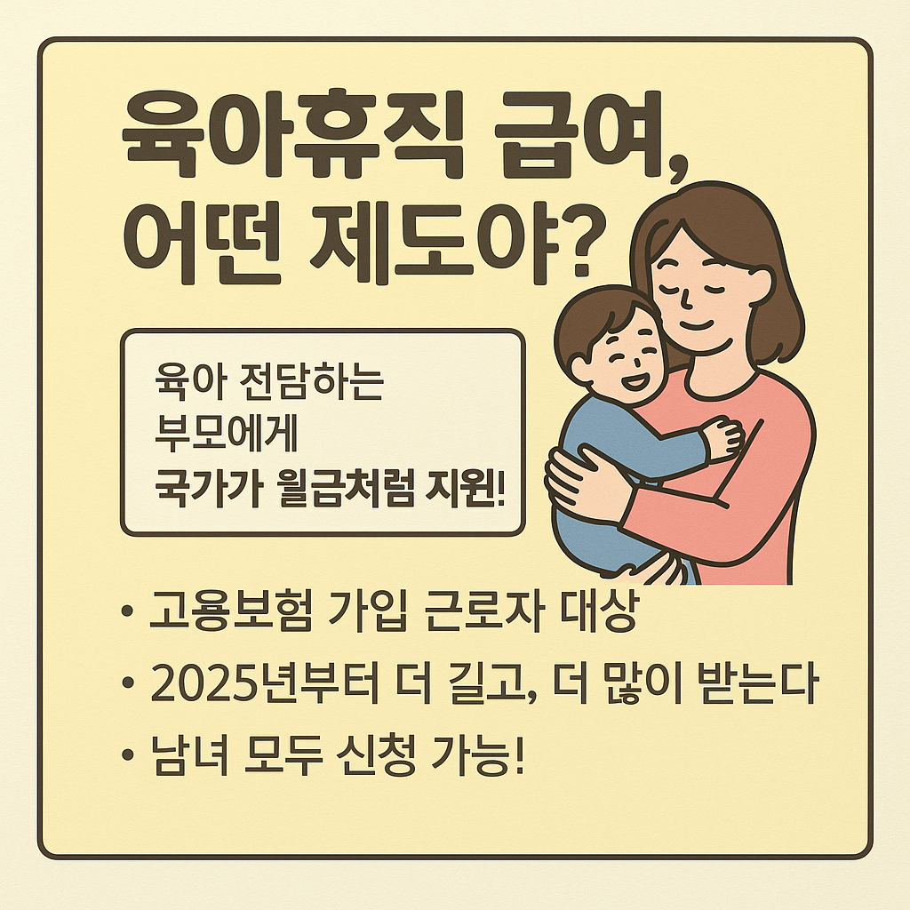 육아휴직 급여는 근로자가 자녀를 양육하기 위해 일정 기간 직무를 쉬는 동안, 소득 공백을 보완하기 위해 고용보험에서 지원하는 제도입니다. 이 제도는 일·가정 양립을 위한 사회 정책의 일환이며, 2025년부터는 제도 전반이 대폭 개편되어 더욱 실질적인 지원이 이루어집니다.