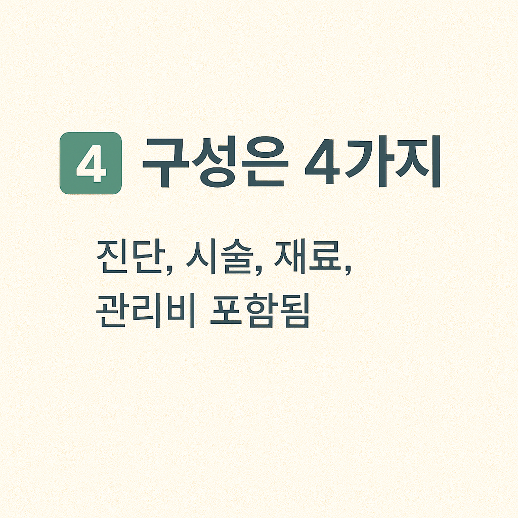 - 구성요소(진단, 재료, 사후관리 등) 별 세부 확인 필수