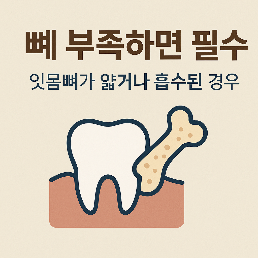 | 치조골 부족 | 치아가 빠진 후 시간이 지나면 뼈 흡수로 식립이 어려워짐 |