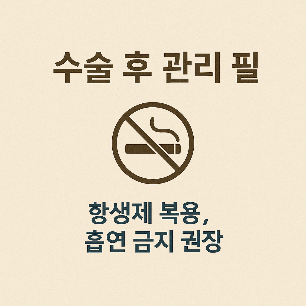- 금연 및 금주는 회복 지연의 주요 원인이므로 반드시 피해야 함