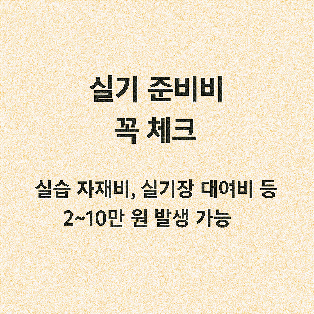 - 학원 수강: 학원에서 실기 대비반 수강 시 평균 50만~80만 원 사이