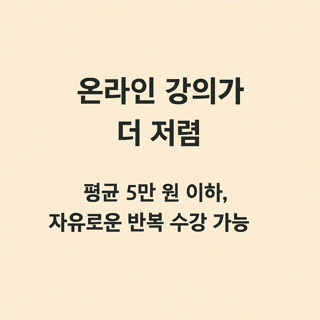 - 장점: 저렴한 비용, 반복 수강 가능, 비대면 편리성