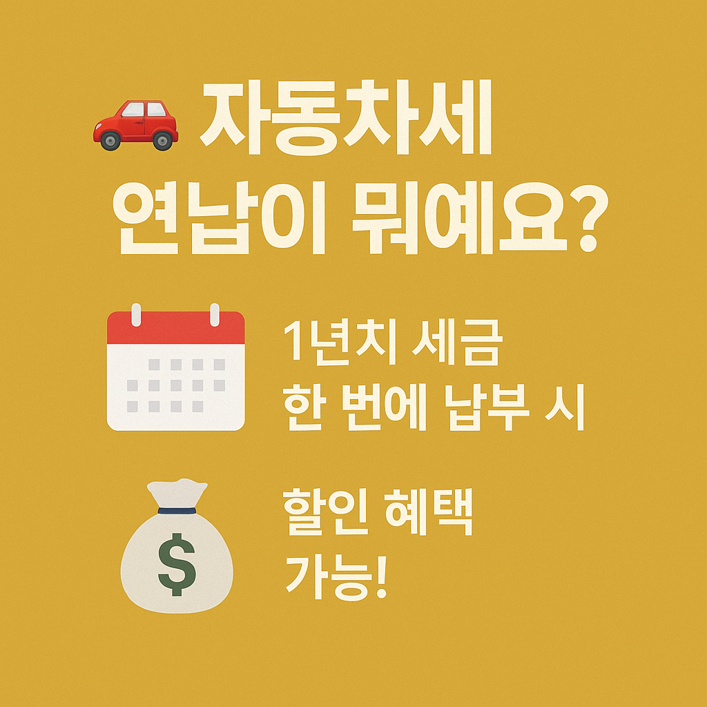 자동차세 연납신청은 한 번만 신청해도 올해 남은 세금 부담을 줄이고 행정적 번거로움도 줄일 수 있는 제도입니다. 2025년에는 꼭 1월 신청을 고려해 보세요.