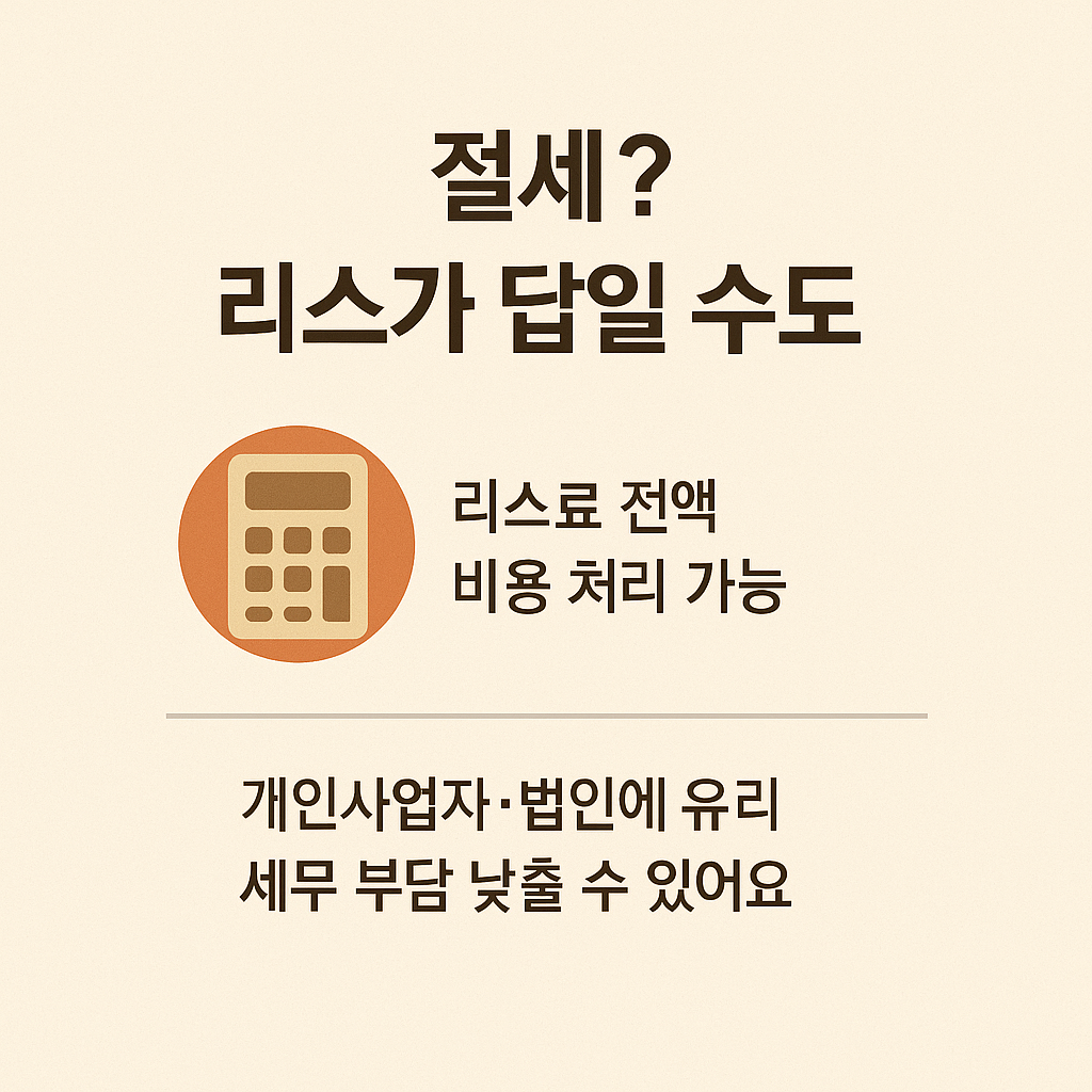 | 세무 절감 효과 | 리스료 전액 비용 처리 가능 | 개인사업자 / 법인 |