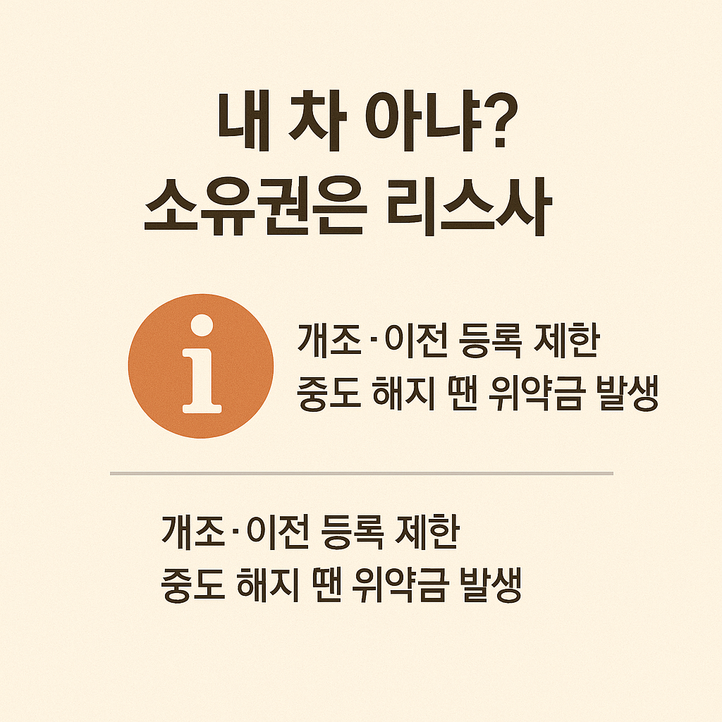 | 소유권 부재 | 차량은 리스사 소유 | 개조·명의 이전 불가 |
