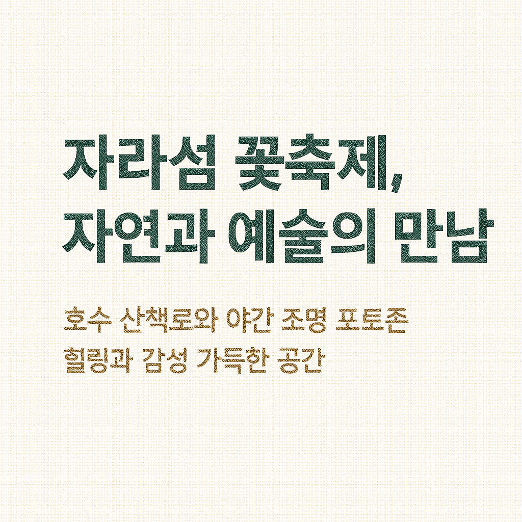 이처럼 자라섬 꽃 페스타 방문 전 교통과 숙박 계획을 철저히 세우는 것이 즐거운 축제 경험과 편안한 여행을 위한 필수 조건입니다. 2025년 축제 기간에도 위 안내를 참고해 알차고 쾌적한 방문 되시길 바랍니다.