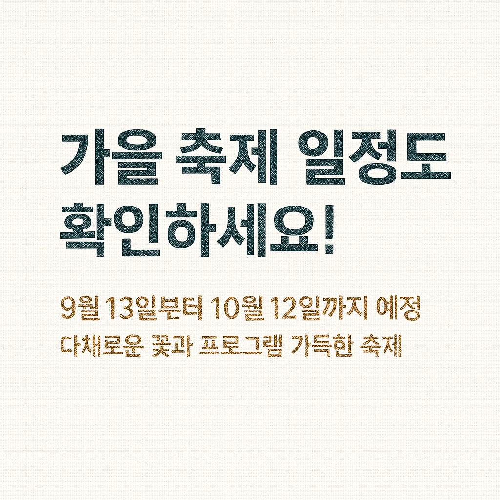 | 가을 축제 | 2025년 9월 13일 ~ 10월 12일 (예정) | 코스모스, 국화 등 가을꽃과 지역 농특산물 축제 연계 행사 |