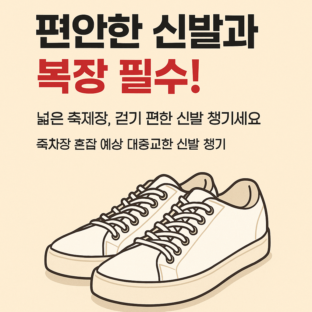 - 체력 관리: 넓은 축제장을 걷는 만큼 충분한 휴식과 수분 섭취를 잊지 마세요.