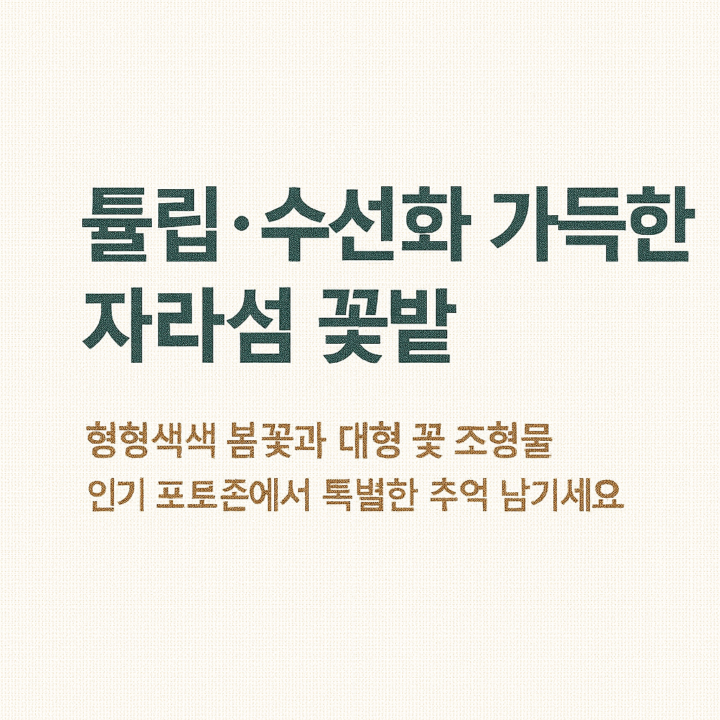 | 튤립 | 다양한 색상과 품종이 자라섬 전역에 심어짐 | 강변 꽃길, 중앙 광장 주변 | 형형색색의 꽃들이 봄의 활기를 상징 |