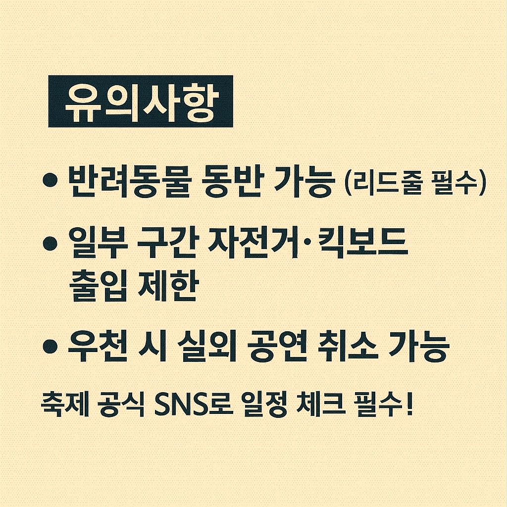 - 축제 공식 SNS 확인: 당일 일정 변동은 실시간 공지