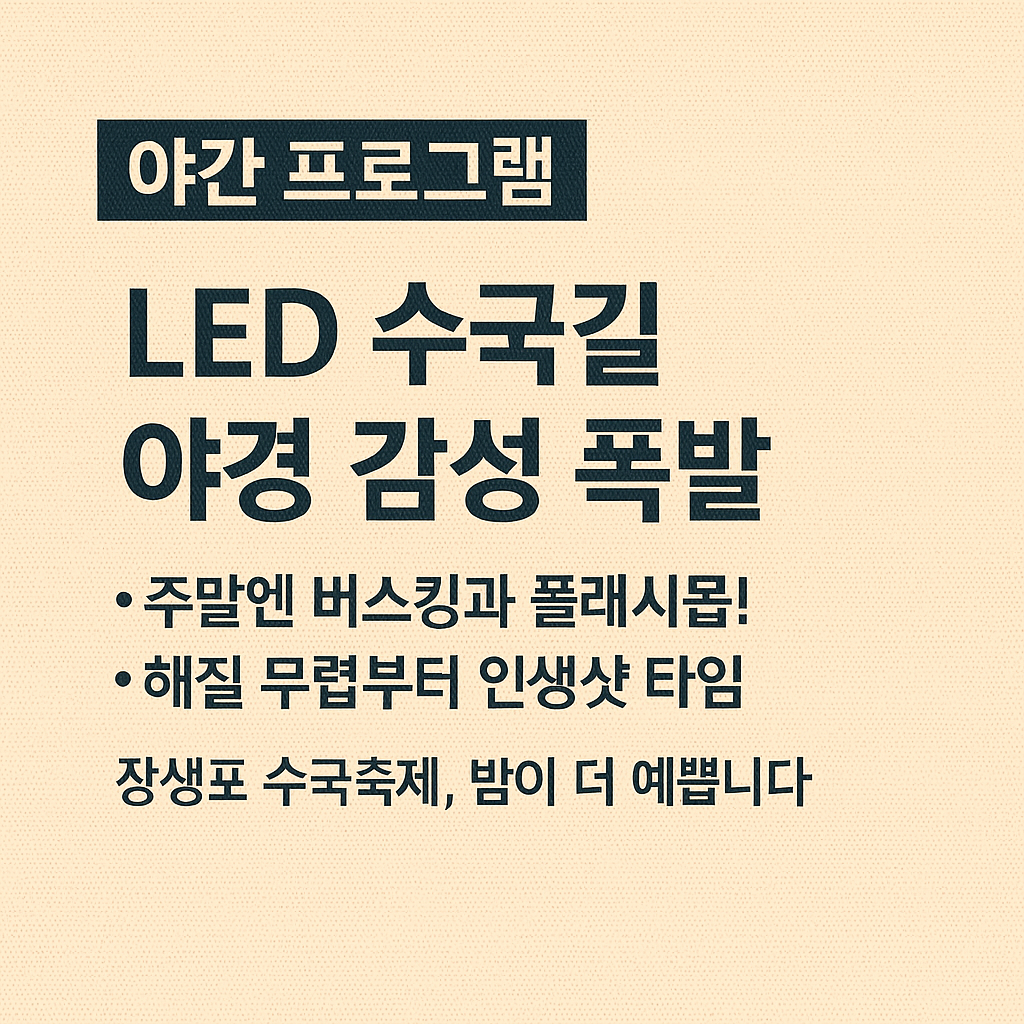 이처럼 장생포 수국축제는 시각적인 아름다움은 물론, 오감을 자극하는 체험 중심의 콘텐츠가 특징입니다. 특히 LED 야경 수국길은 SNS상에서 ‘인생사진 명소’로 인기를 끌고 있으며, 해질 무렵부터 본격 조명이 점등되기 시작해 오후 9시까지 환상적인 분위기를 연출합니다.