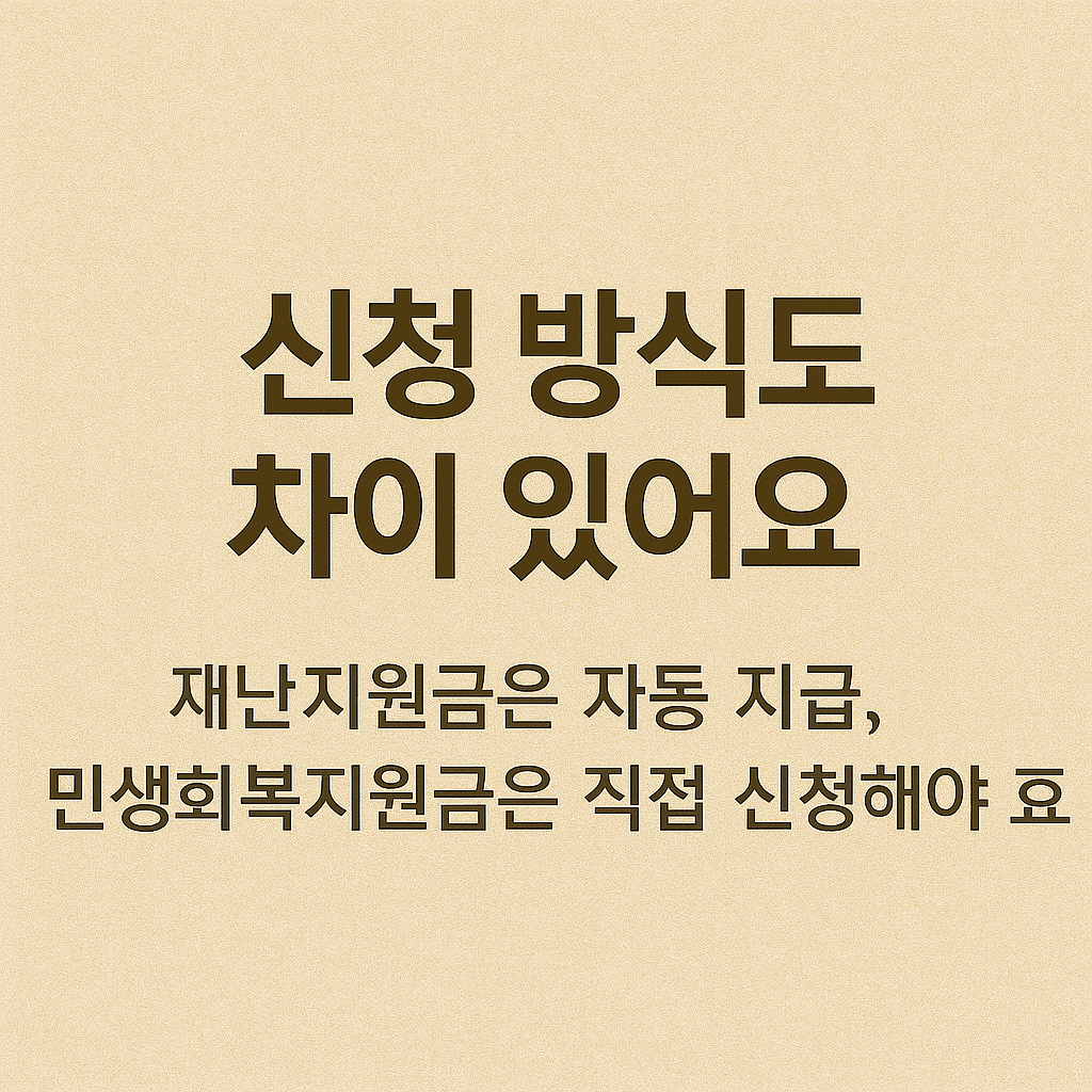 재난지원금은 일반적으로 대국민 위기 대응용으로 빠르게 지급되며, 민생회복지원금은 중위소득 이하 가구, 기초생활수급자, 차상위계층 등 보다 좁고 명확한 대상층을 위한 맞춤형 지원금입니다.