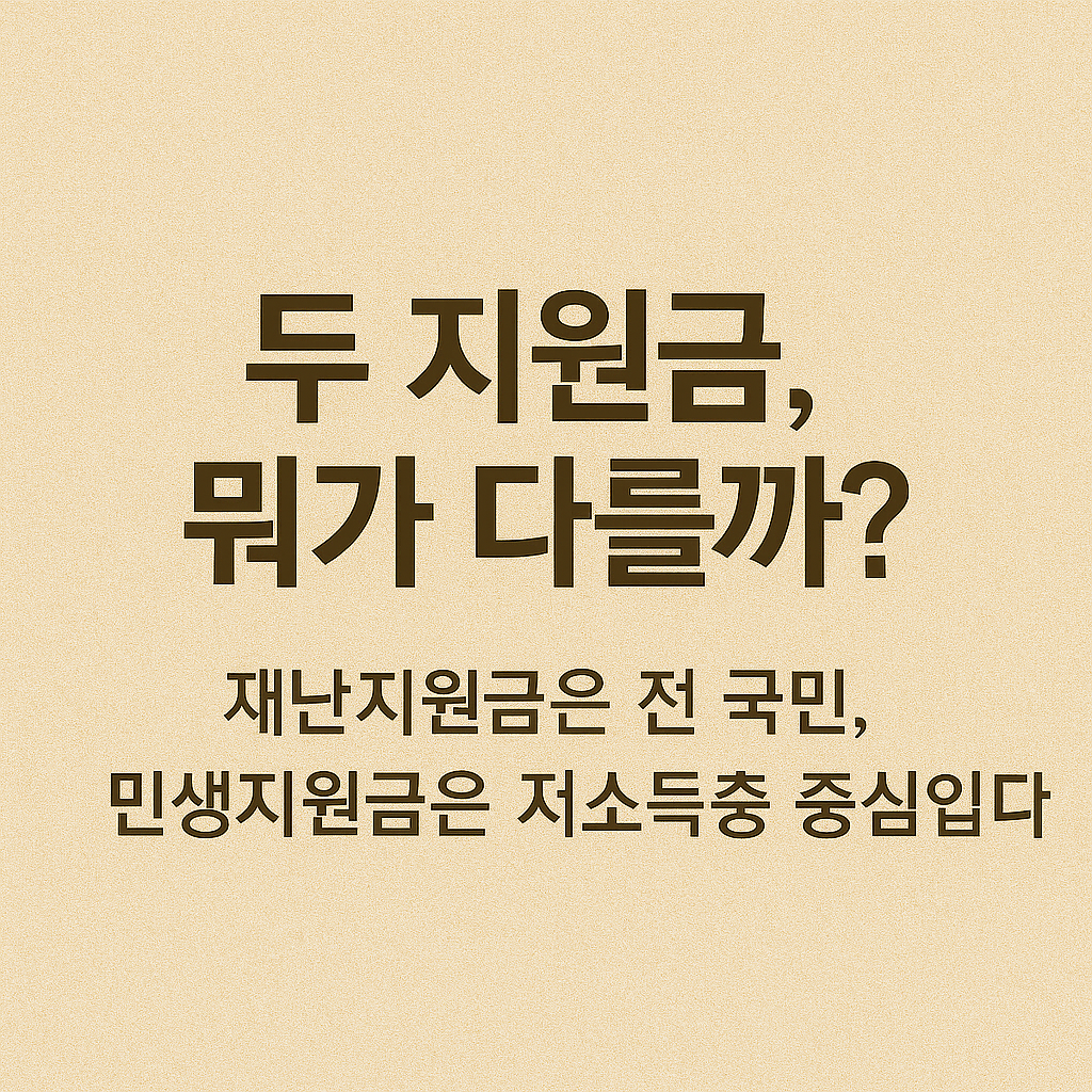 2025년 기준, 정부는 다양한 명목의 지원금을 운영하고 있습니다. 그중 재난지원금 신청과 민생회복지원금은 비슷해 보이지만 성격과 대상, 신청 방식 등이 뚜렷하게 다릅니다. 본문에서는 두 제도의 차이점을 비교하고, 각각의 신청 조건 및 혜택을 정리합니다.