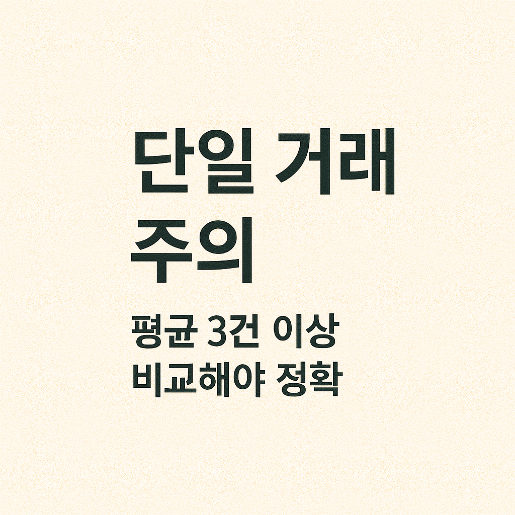 단 한 건의 거래만 보고 시세를 판단하면 왜곡될 수 있습니다. 최소 3건 이상의 유사 조건 거래를 평균 내는 방식이 합리적입니다.