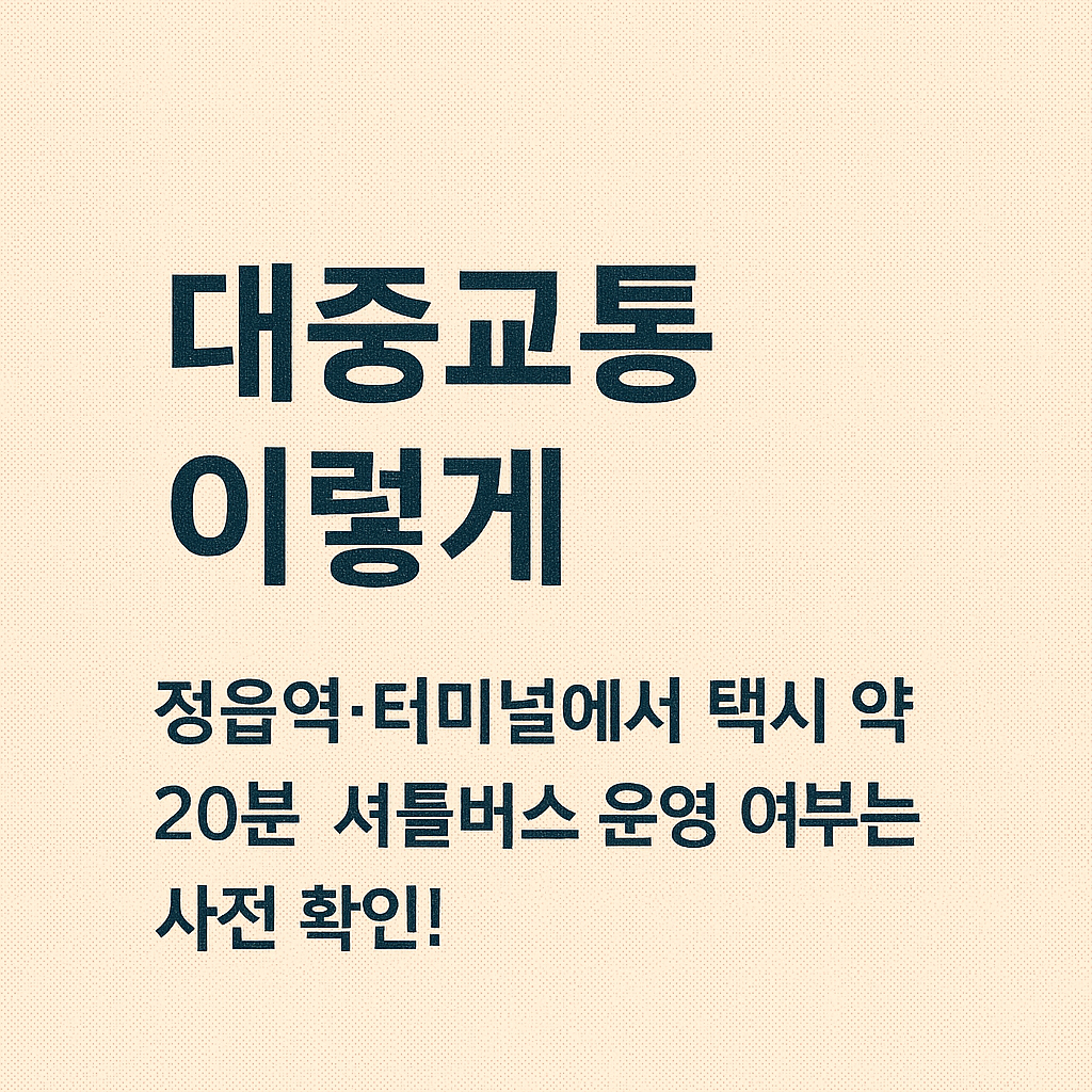 - 정읍시외버스터미널 → 택시: 약 25분 소요 / 요금 15,000원 내외