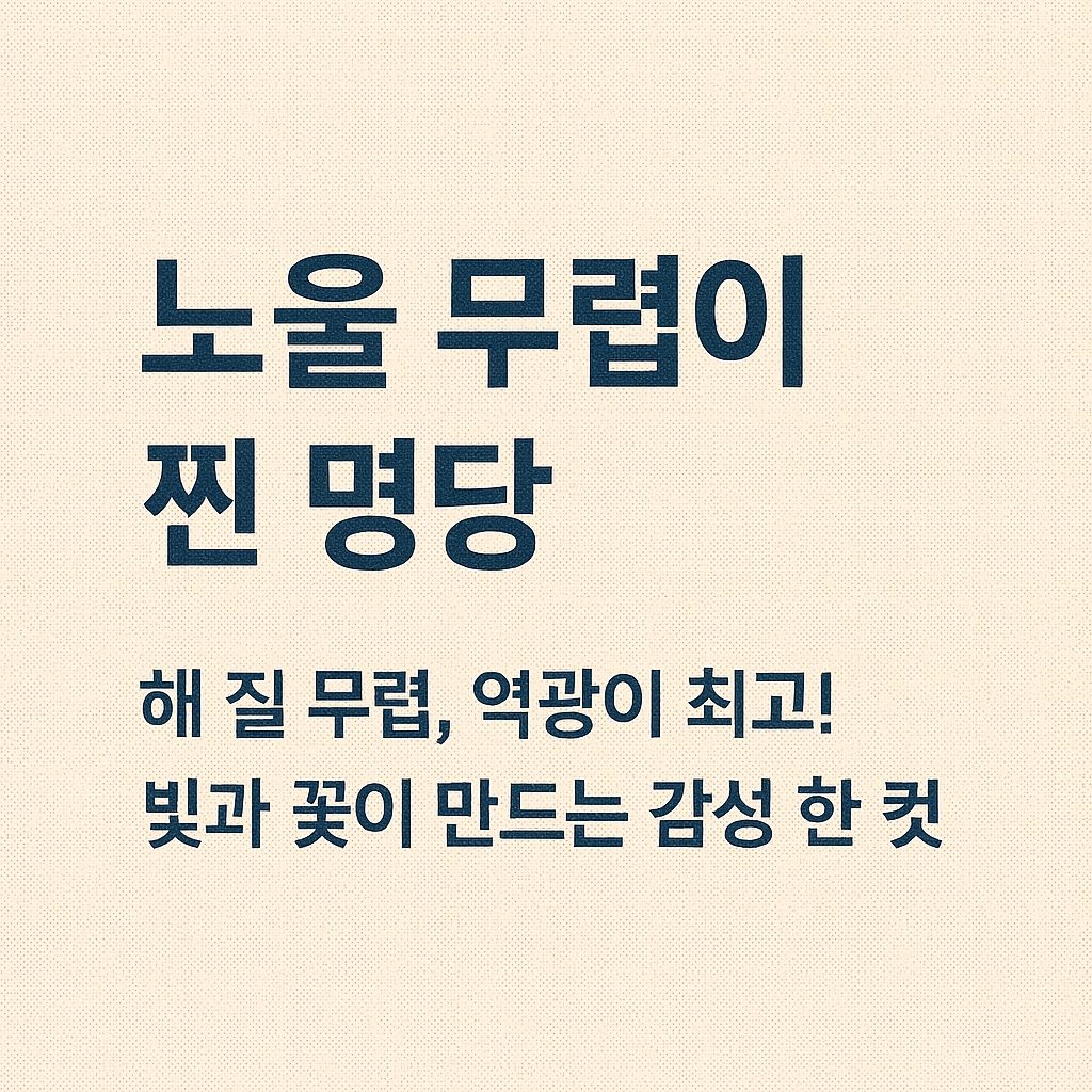 - 해질 무렵(6:30~7:00): 노을과 보랏빛의 조화, 감성적인 사진에 최고.