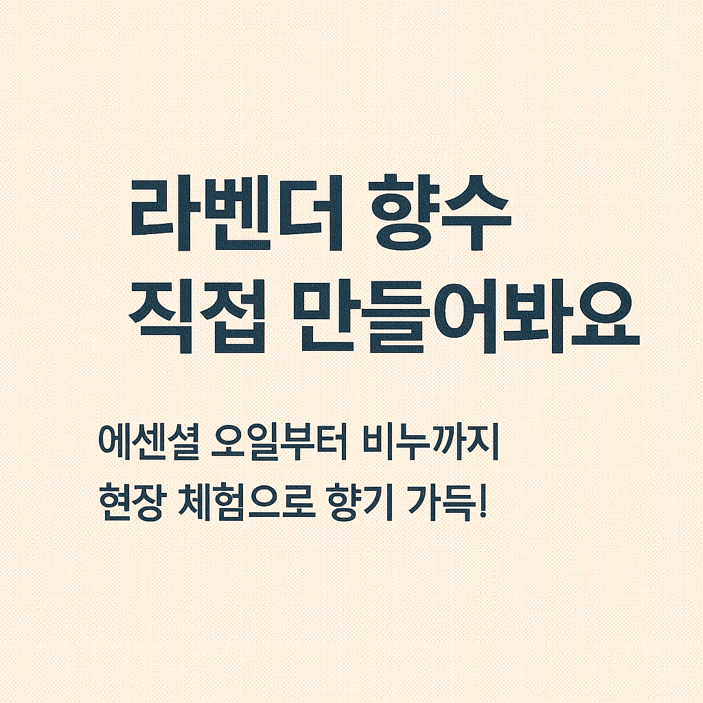 - 라벤더 향수 만들기: 추출한 에센셜 오일로 나만의 방향제 또는 향수를 직접 제작. 현장 참여 가능.