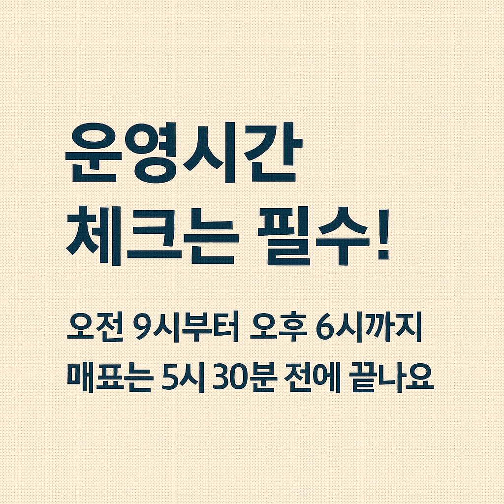 | 운영 시간 | 오전 9시 ~ 오후 6시 (입장 마감: 오후 5시 30분) |