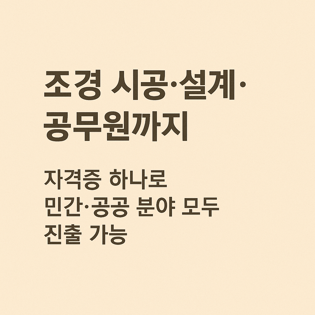 응시 자격이 별도로 없기 때문에 누구나 도전할 수 있으며, 고등학생, 대학생, 경력단절자, 일반인 모두 조경 분야에 관심이 있다면 쉽게 접근 가능한 자격증입니다. 특히 건설 현장, 조경설계사무소, 조경 유지관리 업체, 정원 시공 분야 등 민간영역뿐 아니라 지자체, 공공기관, 환경기초시설 등의 공공 영역에서도 기능사 자격 보유자를 우대하고 있다는 점에서 자격의 실효성이 높습니다.