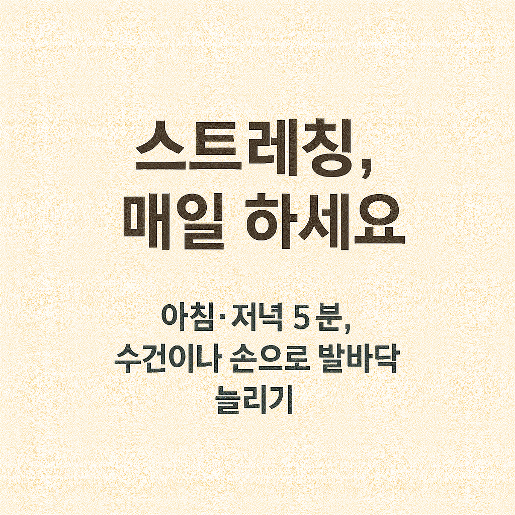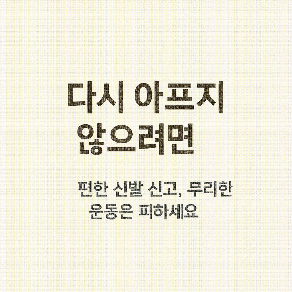 | 매일 스트레칭 | 발바닥, 종아리, 햄스트링 부위 중심으로 아침·저녁 5분 이상 |