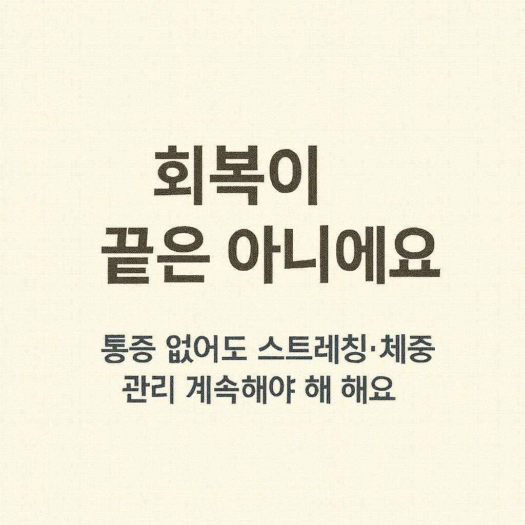 | 회복기 | 스트레칭, 체중 관리, 재발 방지 | 치료보다 유지가 더 중요 |