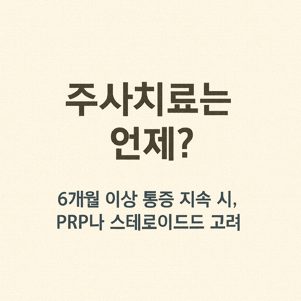 | 스테로이드 주사 | 염증 억제와 통증 완화를 위해 코르티코스테로이드를 직접 주입 | 단기 효과 목적, 반복 주사 금지 |