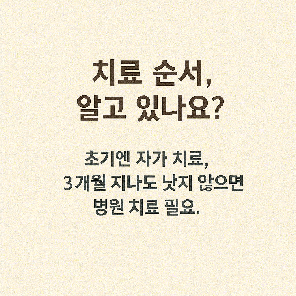 - 치료 지속 기간 확인: 6개월 이내 호전이 없다면 병원 전문 치료나 시술을 고려해야 합니다.