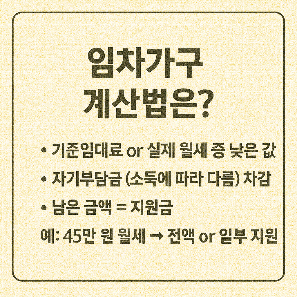 - 가구원 수, 지역, 실임차료 세 가지 모두 확인해야 정확한 금액 산정 가능