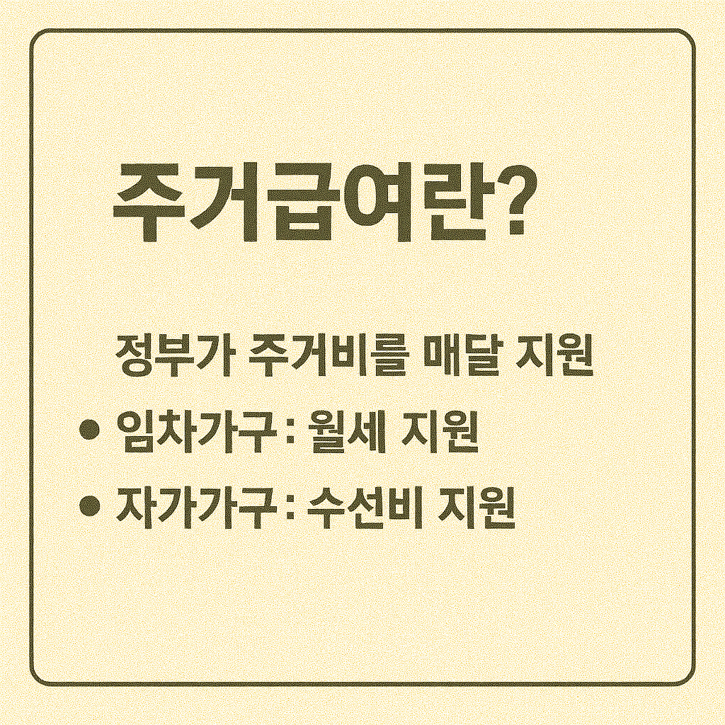 2025년 기준 개편된 주거급여 신청자격과 지원 내용을 한눈에 정리했습니다. 제도 개요, 소득·재산·주거요건, 신청 절차와 지급 금액, 수선비용까지 최신 정보를 담았습니다.1. 주거급여란? 제도