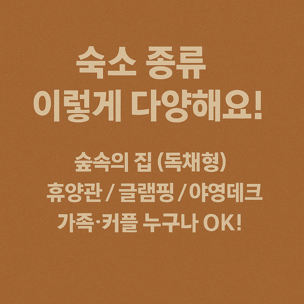 | 1 | 숲속의 집 | 4~8인 | 소형/중형/단체형 등 독채형. 데크·주방 포함 |