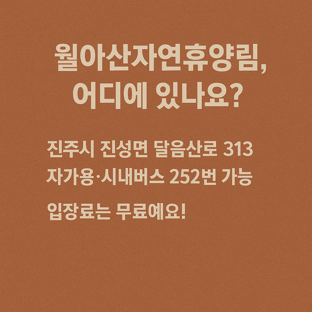 진주 월아산자연휴양림은 경상남도 진주시 진성면 달음산로 313에 위치한 대표적인 자연 체험·숙박 휴양림으로, 월아산 자락의 울창한 숲과 체계적인 시설 운영이 결합되어 진주시민은 물론 외부 방문객에게도 큰 인기를 끌고 있습니다. 방문 전 위치, 교통편, 운영시간 등 핵심 정보를 미리 확인해 두면 보다 쾌적한 이용이 가능합니다.