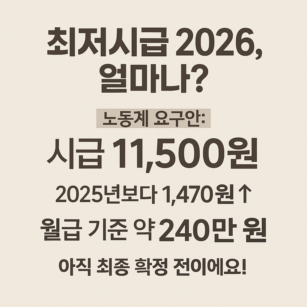 - 최저시급 2026 (요구안): 11,500원 → 월 환산 2,403,500원