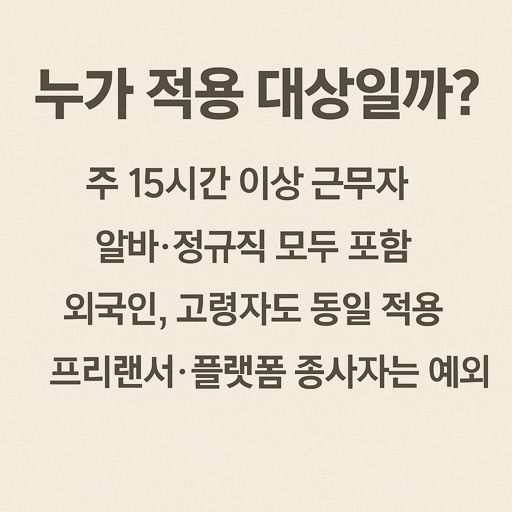 - 주 15시간 이상 근무하는 근로자 (주휴수당 지급 조건과 동일)