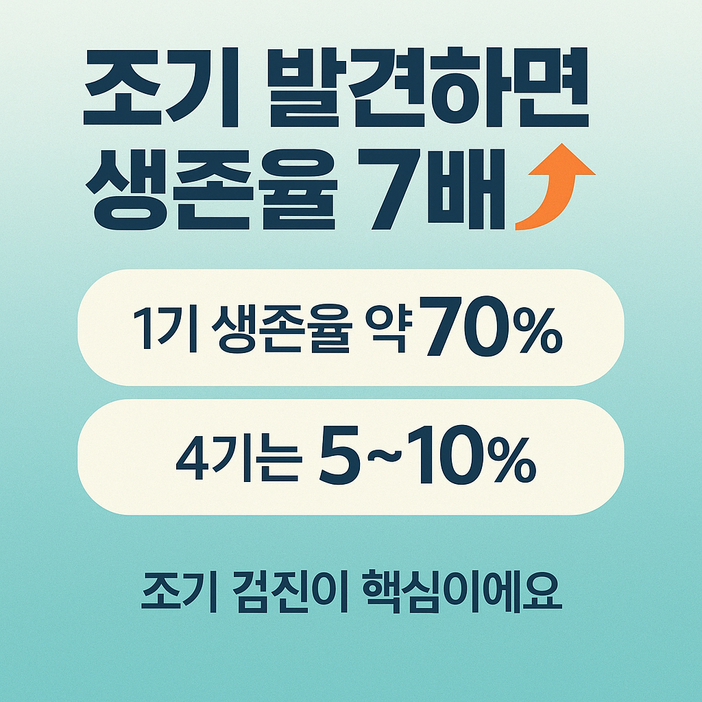 | 1기 (조기 발견) | 약 70% | 수술로 완치 가능성 높음 |