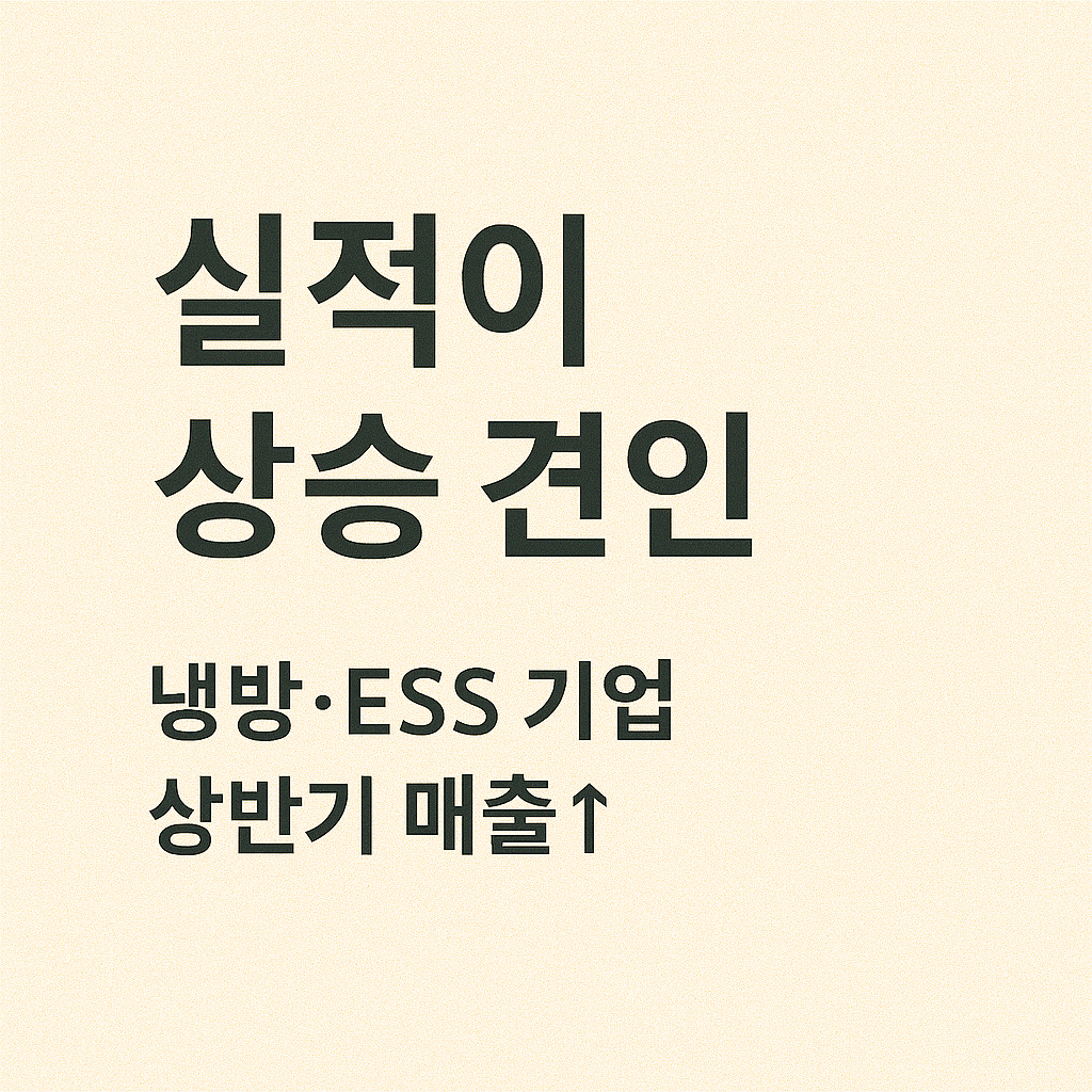 | LG에너지솔루션 | ESS 배터리, 에너지저장장치 | ESS 매출 전년 동기 대비 18% 증가 | +15.1% | 전력 피크 대응 솔루션 수요 급증 |