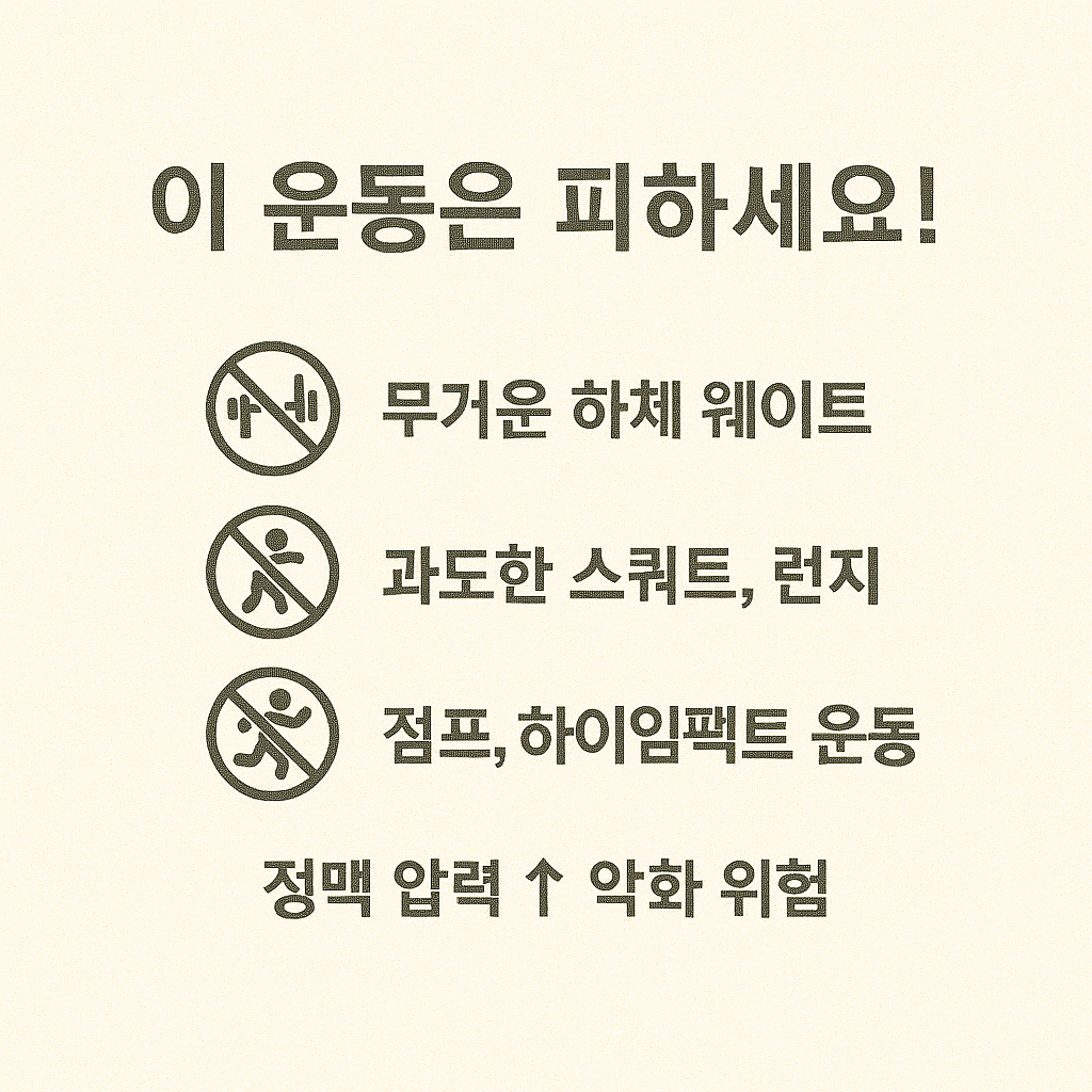 | 하이임팩트 인터벌 운동 (HIIT) | 심박수 급상승으로 정맥 부담 증가 밸브 기능 저하 가능 |