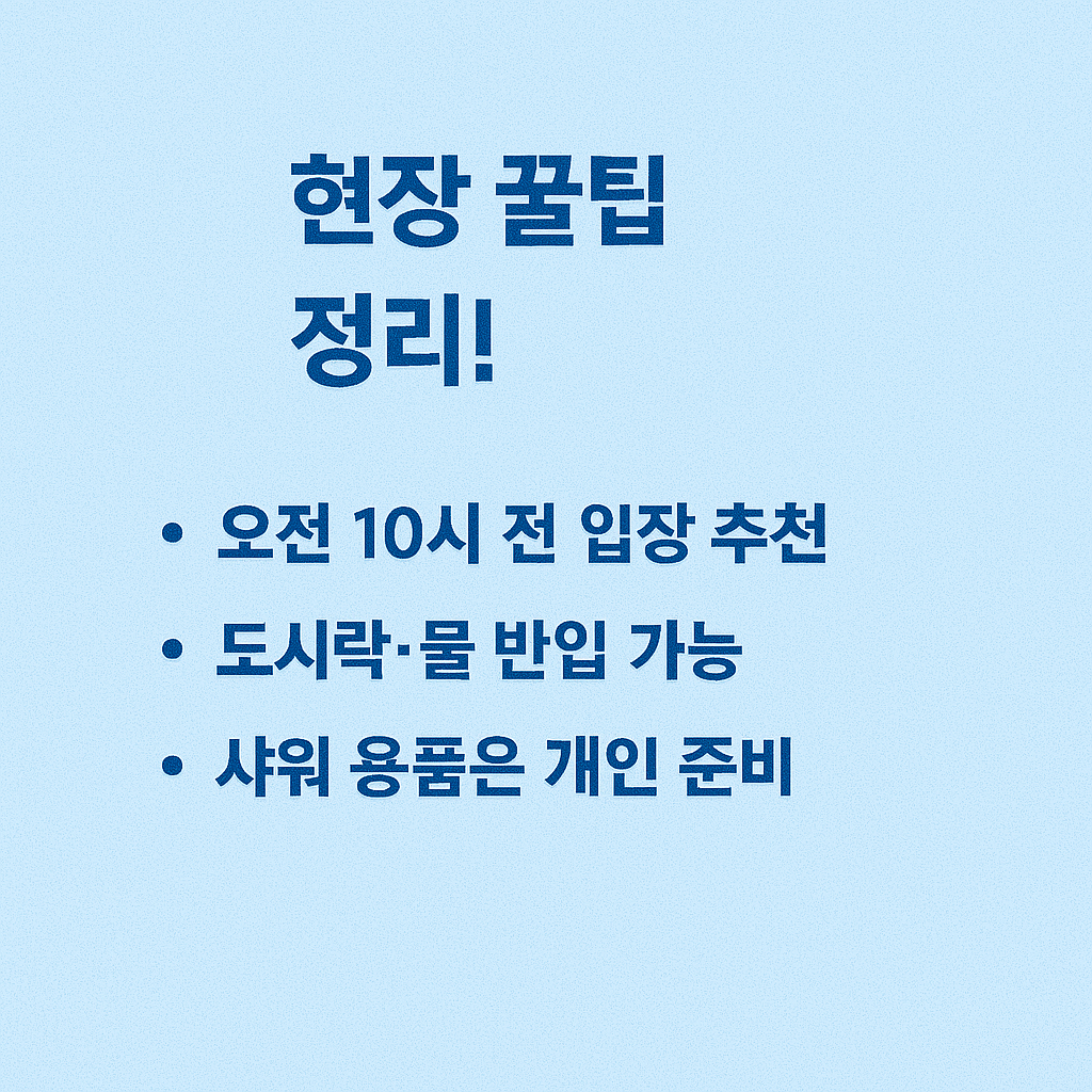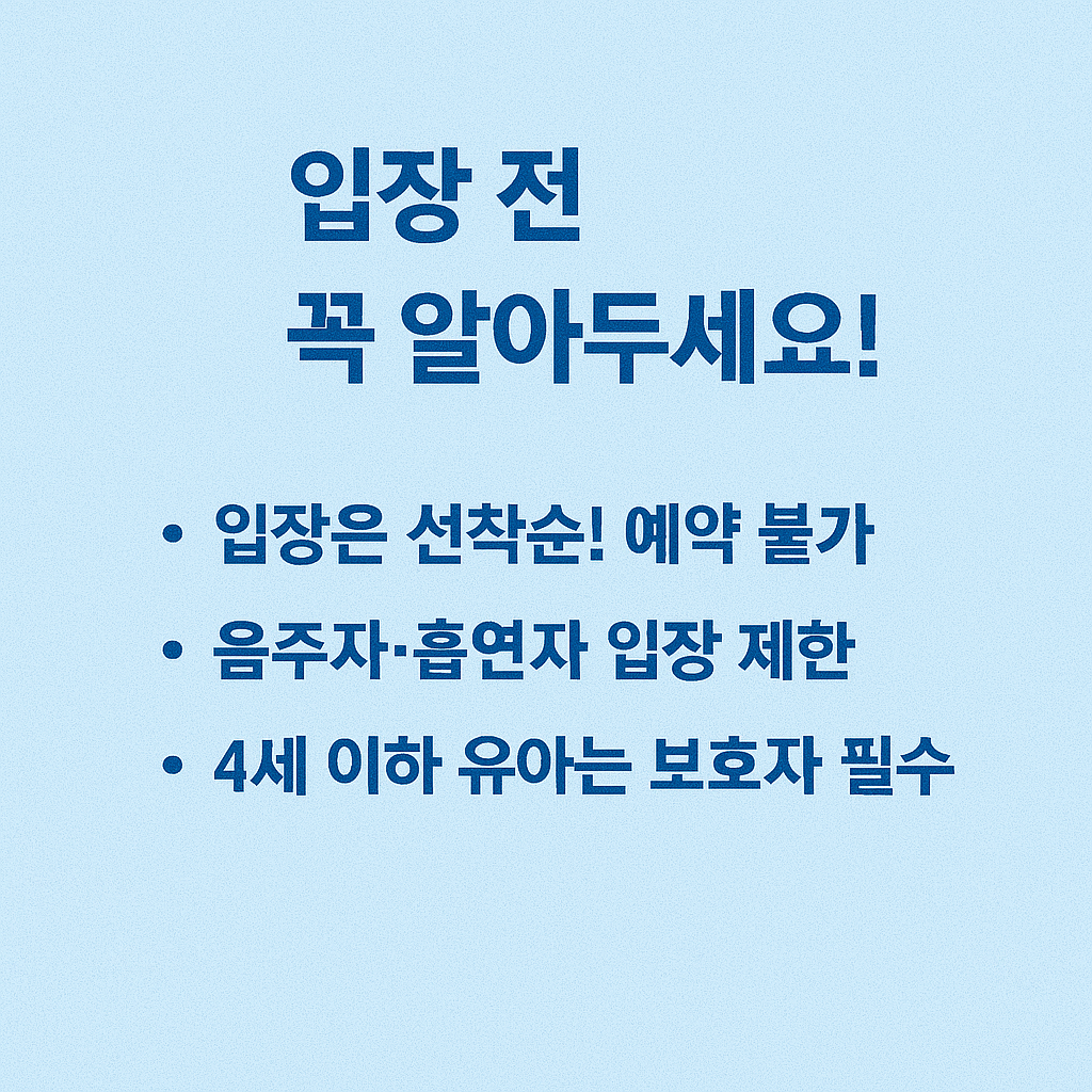 - 1일 최대 입장 인원 제한 있음 → 오전 10시 이전 도착 권장