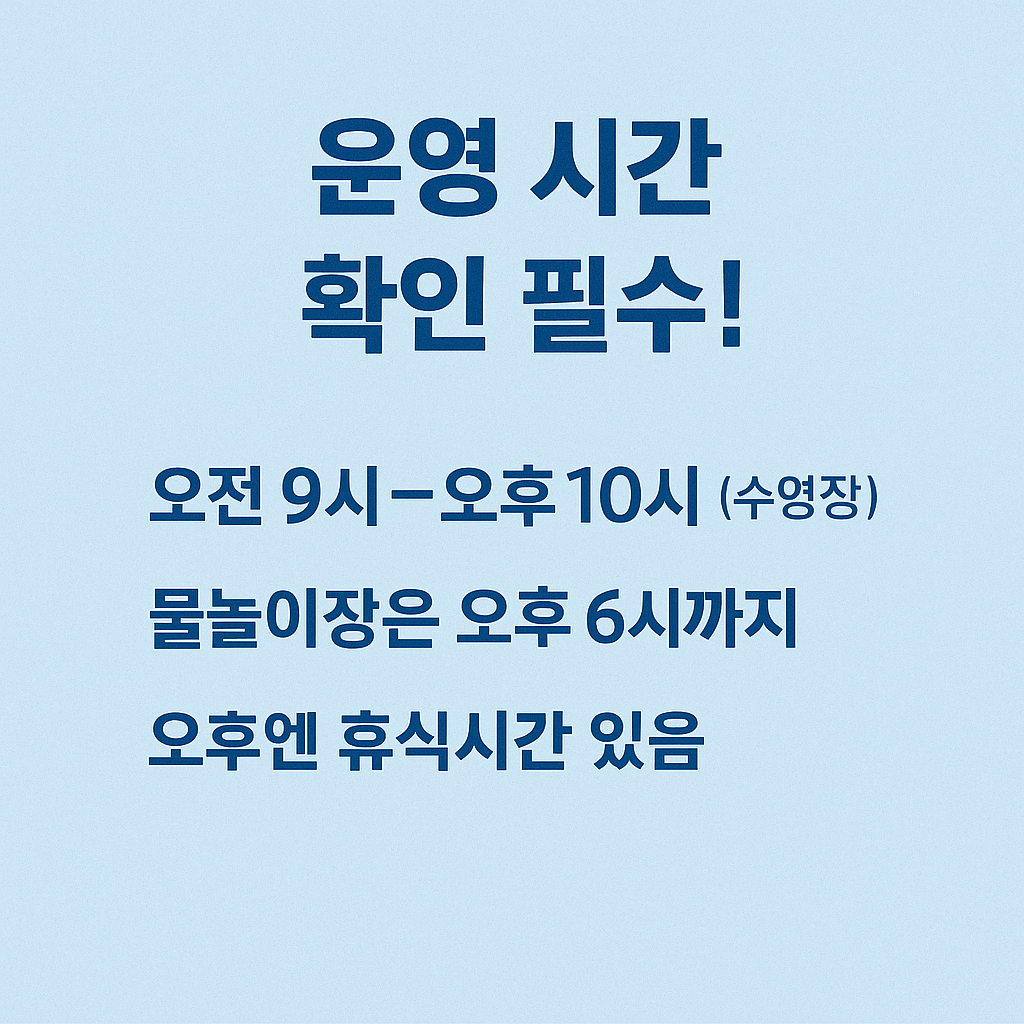 - 물놀이장: 오전 9시 ~ 오후 6시 (기본형 수영장보다 조기 종료)