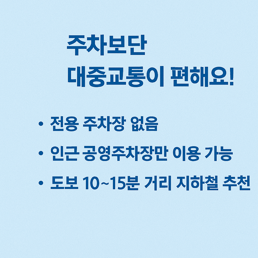 - 전용 주차장 없음 – 인근 공영주차장 이용