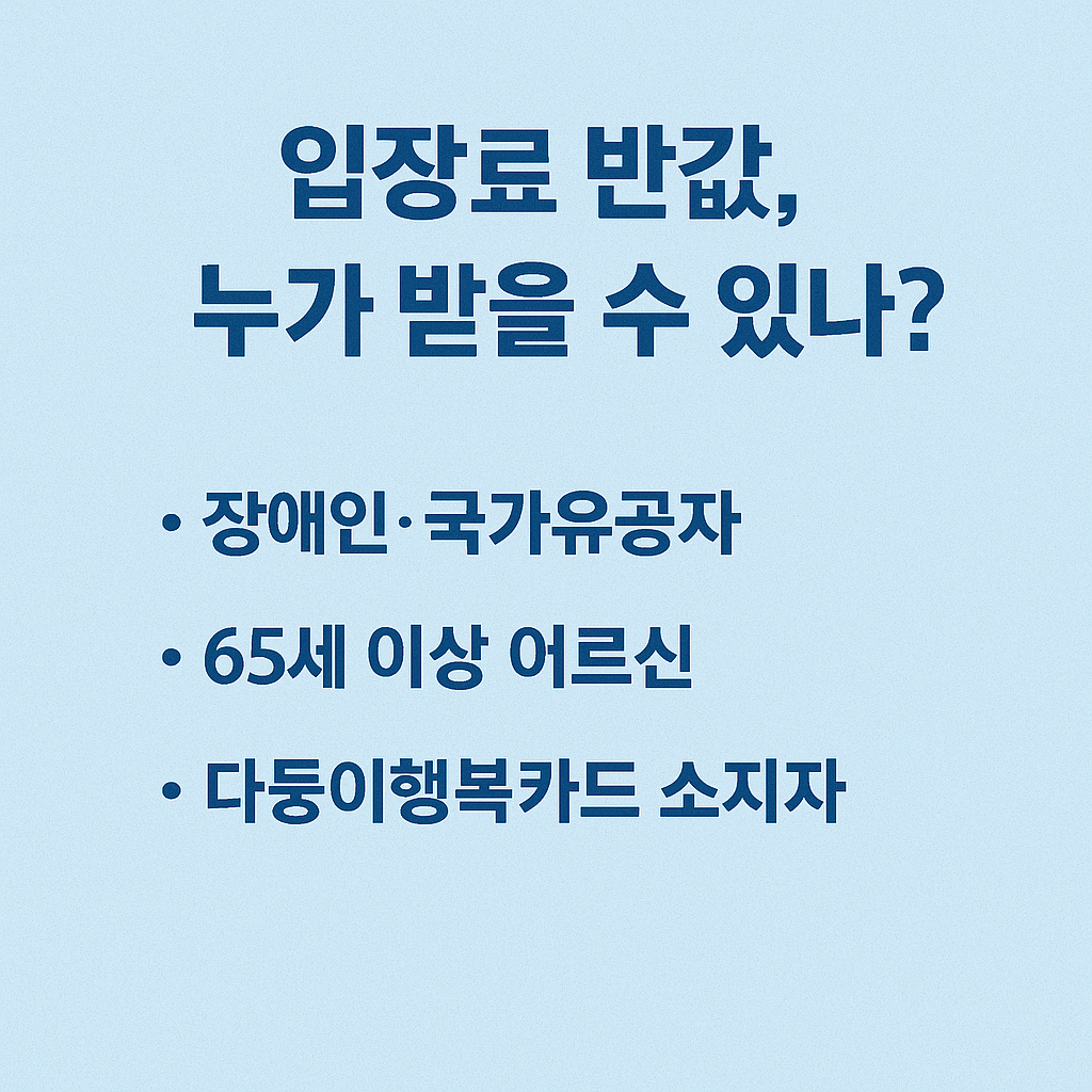 | 장애인 | 장애인등록증 또는 복지카드 | 보호자 1인 동반 시 동일 혜택 |