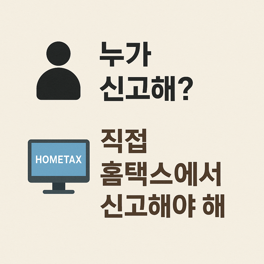 - 매년 5월 1일~5월 31일 국세청 홈택스를 통해 본인이 직접 신고