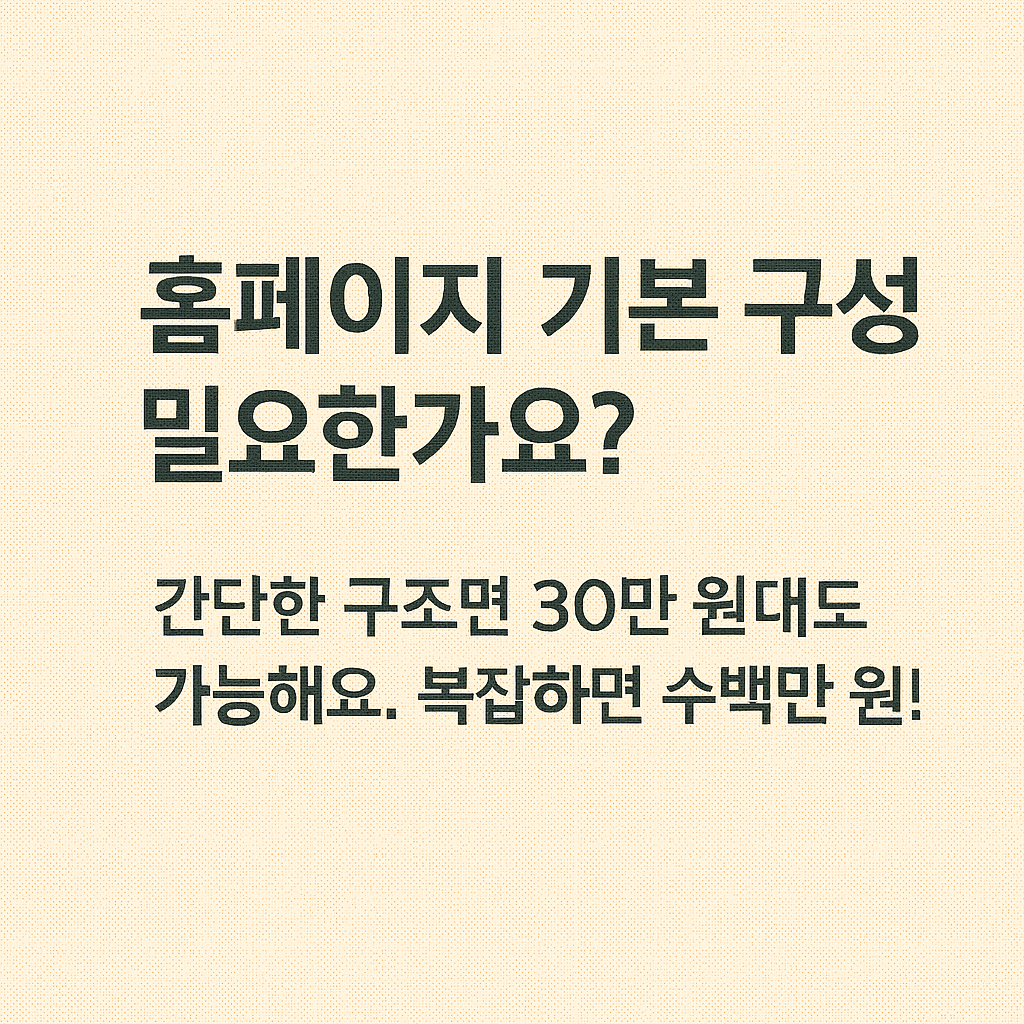 | 기업형 홈페이지 | 5~10페이지 구성, 회사 소개 및 서비스 안내 | 100만 ~ 300만 원 |