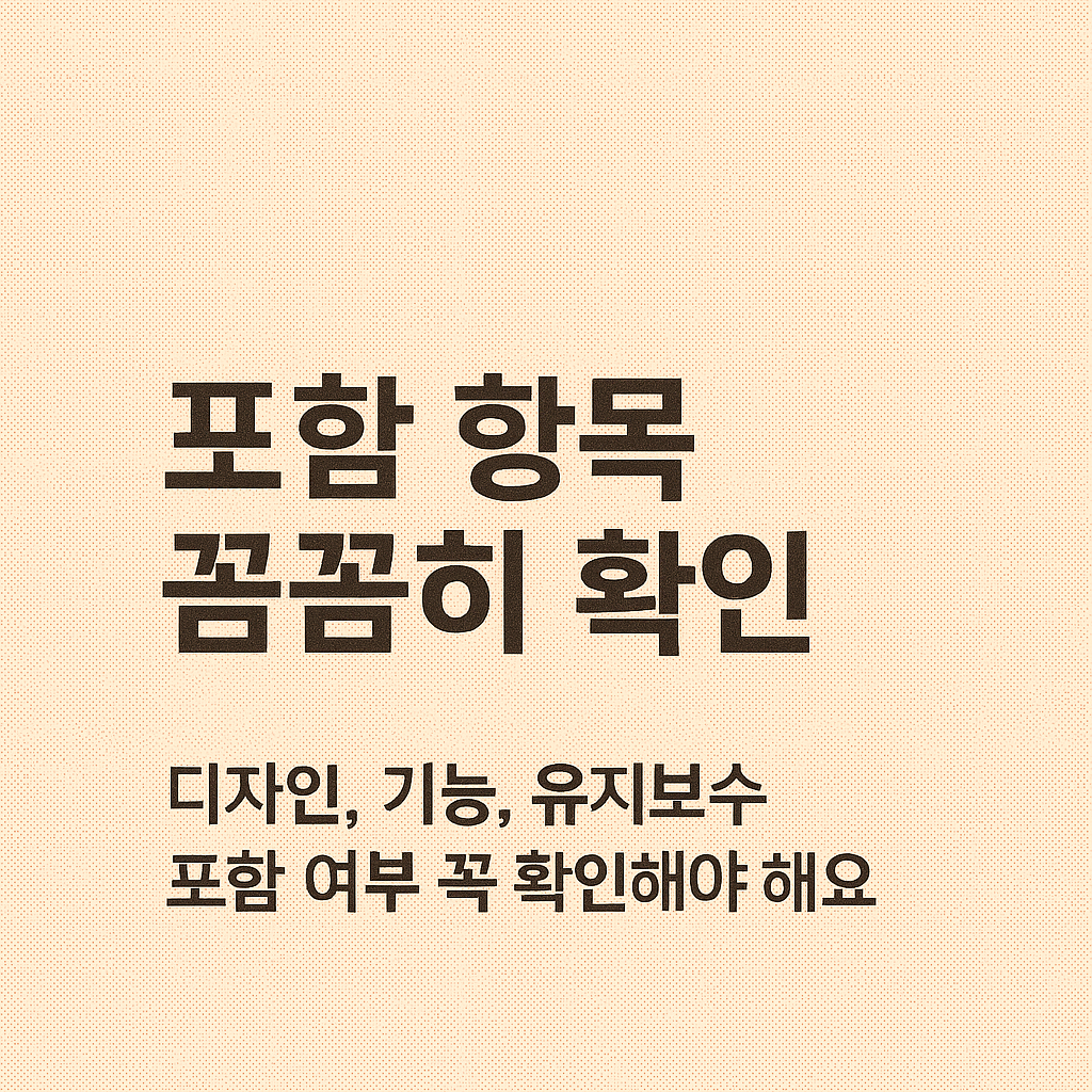 하지만 무엇보다 중요한 것은 견적 항목별 포함 여부를 꼼꼼히 확인하는 것입니다. 같은 금액이어도 포함 기능, 디자인 수준, 유지보수 조건 등에 따라 실제 만족도는 크게 달라질 수 있기 때문입니다.